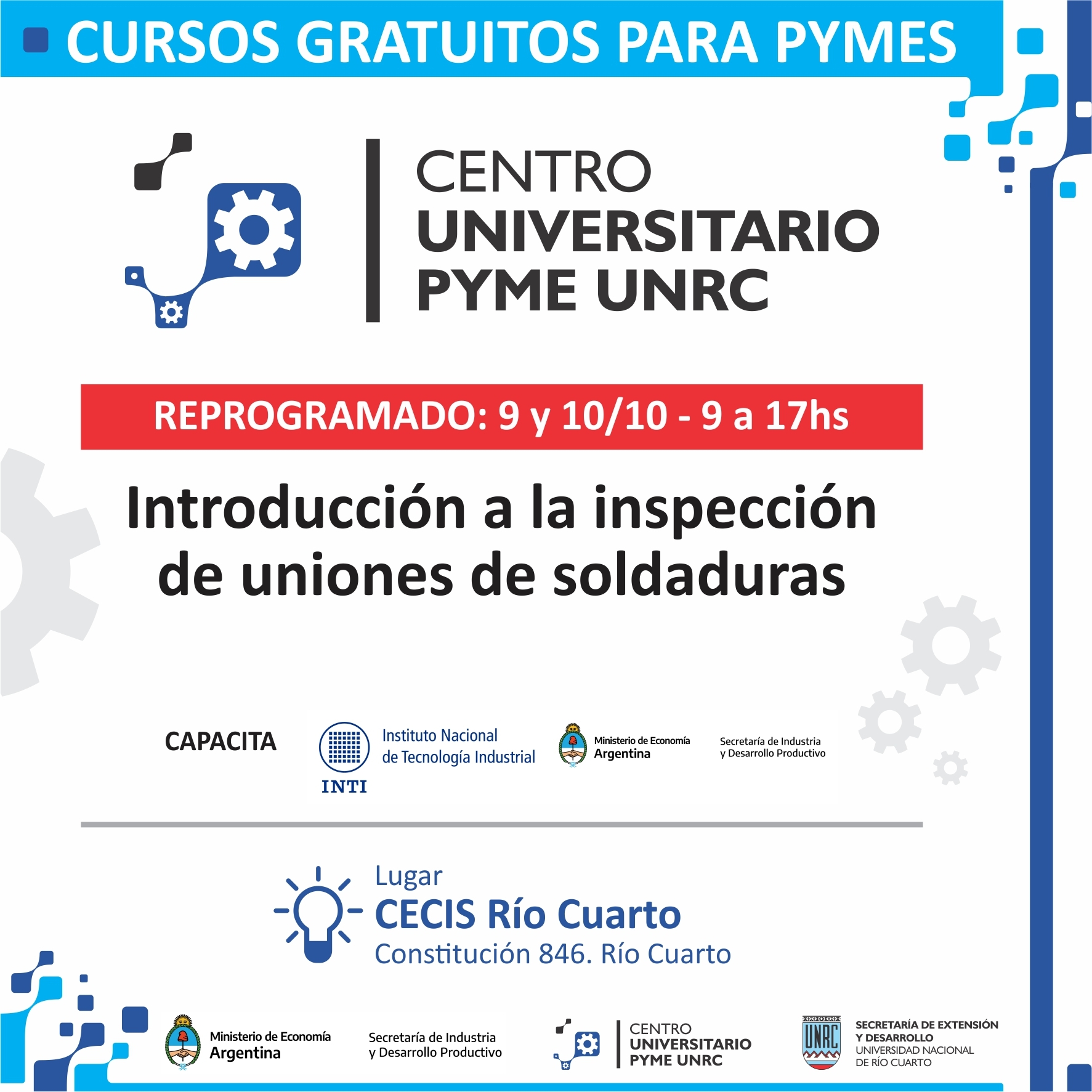 👥 Destinatarios: personal profesional y técnico involucrado en tareas de control e inspección de soldaduras, que trabajan en construcción de estructuras o equipos mediante soldadura. Personal de empresas de estructuras metálicas, empresas o talleres de maquinaria agrícola, fabricantes de equipos a presión, calderas, cañerías de servicios, red de incendio etc.