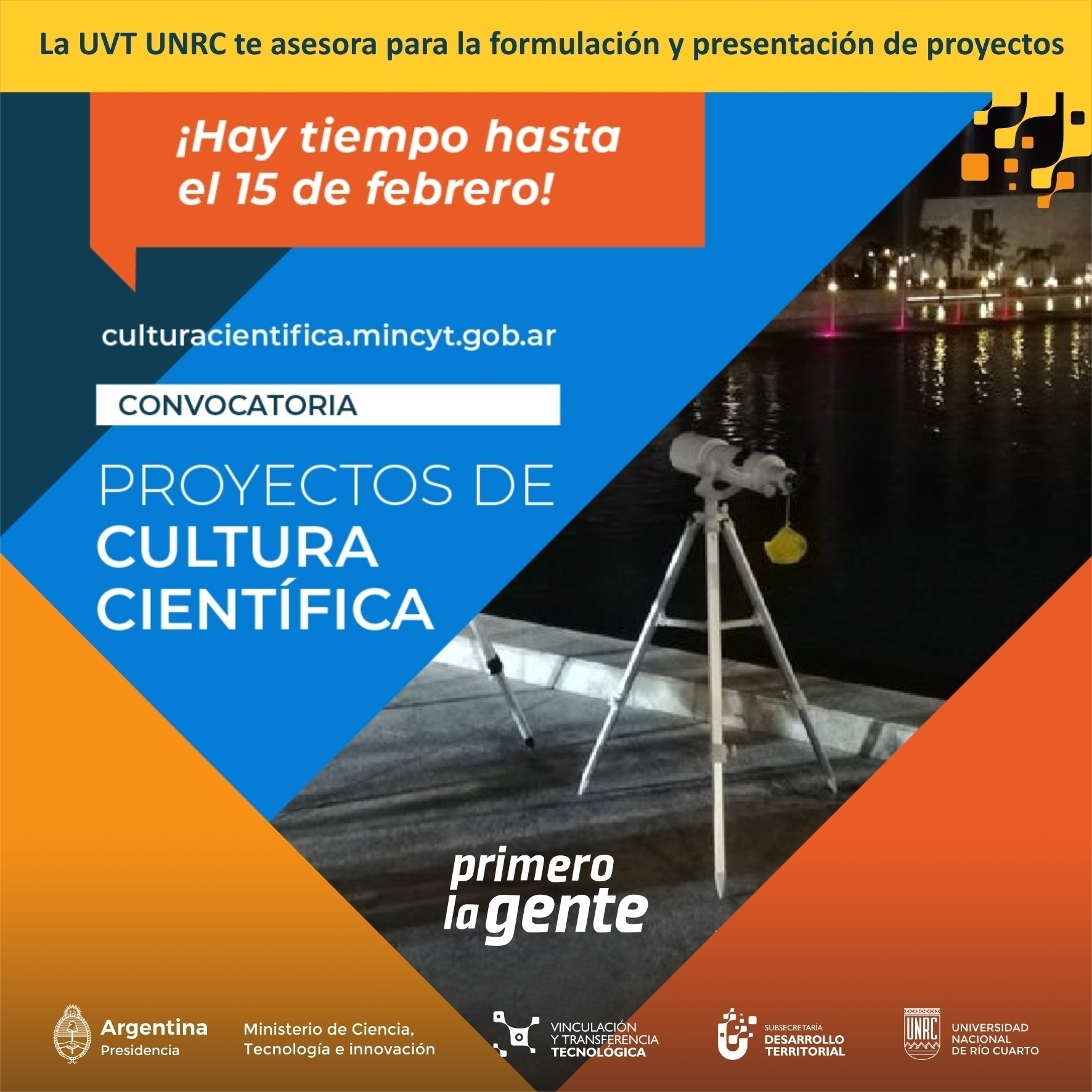 ➡️ Desde la Unidad de Vinculación Tecnológica de la UNRC, podemos asesorarte en la formulación y presentación de tu proyecto.