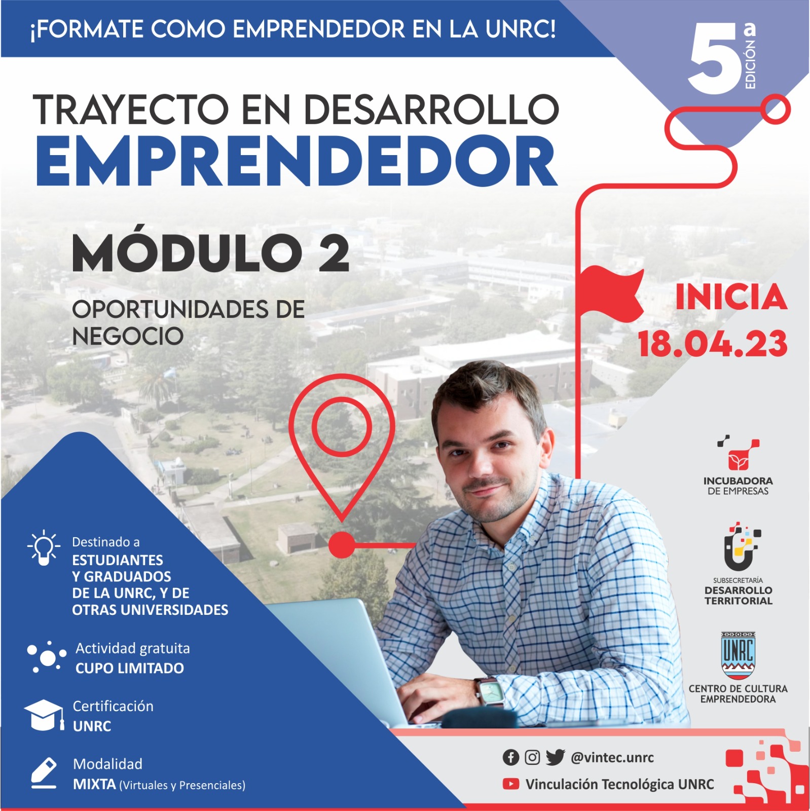 Destinado a: estudiantes y graduados UNRC / Estudiantes y graduados de otras universidades Inicia: martes 18 de abril a las 17h (virtual)